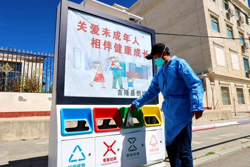 道路旁設(shè)立垃圾分類箱,群眾分類投放垃圾?,F(xiàn)如今,生活垃圾分類已成為新風(fēng)尚。