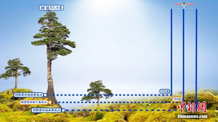 2022年8月,科考隊(duì)赴西藏察隅縣上察隅鎮(zhèn)布宗村,對(duì)這顆云南黃果冷杉進(jìn)行了人工攀樹測(cè)量和區(qū)域調(diào)查。團(tuán)隊(duì)結(jié)合無人機(jī)輔助測(cè)量,最終將這棵樹的準(zhǔn)確樹高定格在83.4米。這也是中國(guó)第一次對(duì)80米高以上的巨樹進(jìn)行攀測(cè)、攝影和種質(zhì)資源采集的綜合科考。