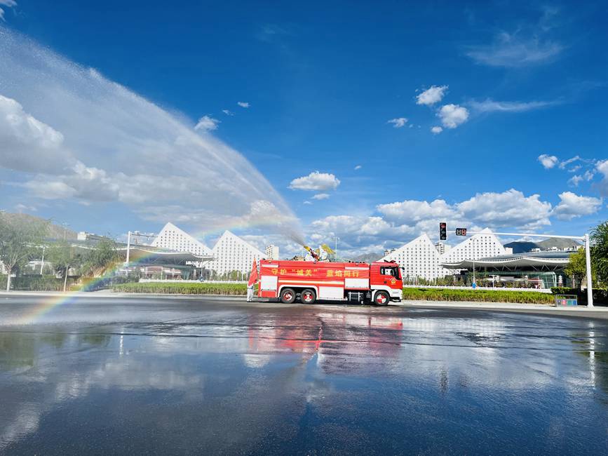 2022年8月13日,一條《彩虹下的心愿,愿疫情早日退去》的視頻刷爆拉薩市民的朋友圈,視頻中消防指戰(zhàn)員化身“大白”,逆行而上,在拉薩主城區(qū)以社區(qū)網(wǎng)格為基本單位開展消殺。當(dāng)天,消防車30輛、指戰(zhàn)員146人集體出動,噴灑而出的消毒液在陽光下形成了一道道彩虹。