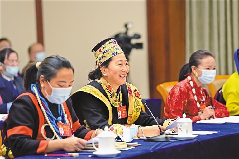 10月17日,西藏代表團(tuán)舉行分組會議,認(rèn)真討論黨的二十大報告。 圖為西洛卓瑪代表(中)在會上發(fā)言。 旦增西旦 攝
