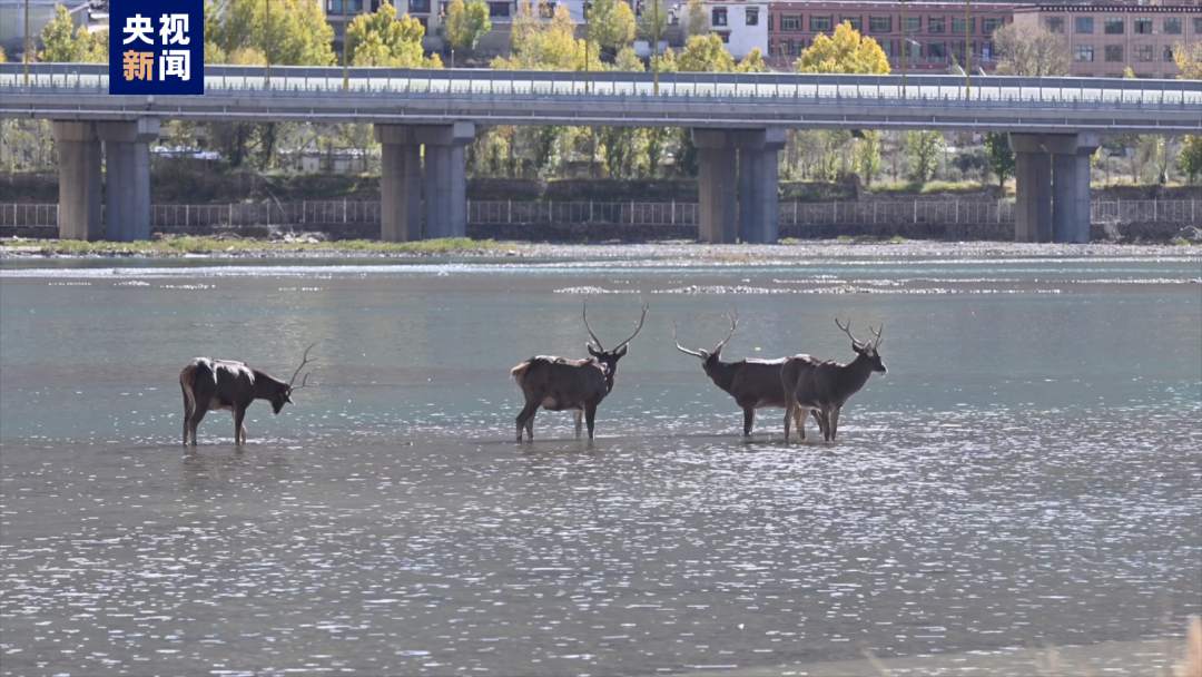 白唇鹿是國家一級重點保護野生動物,近日位于拉薩主城區(qū)的拉薩河畔出現(xiàn)了4只可愛的白唇鹿,引起大家的關注??偱_記者隨即跟隨林草工作人員,走訪了解西藏白唇鹿的棲息狀況。
