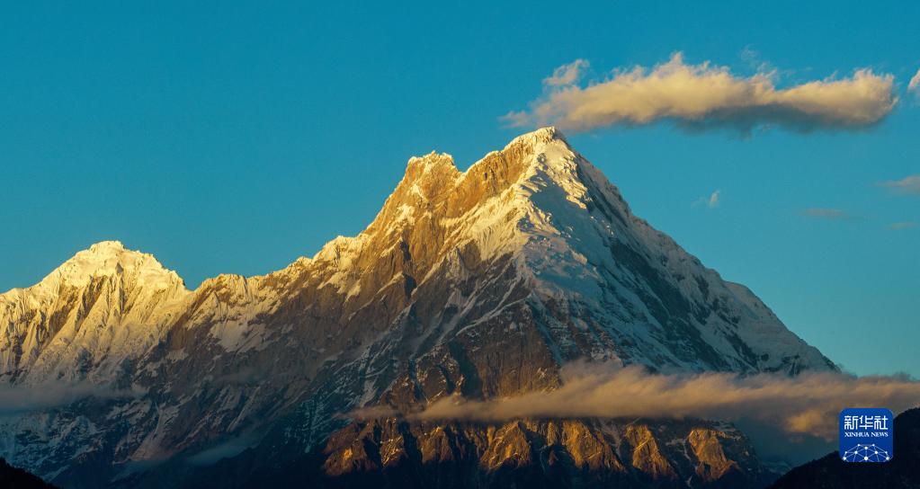夕陽下的加拉白壘峰(11月28日攝,無人機照片)。新華社發(fā)(董志雄 攝)