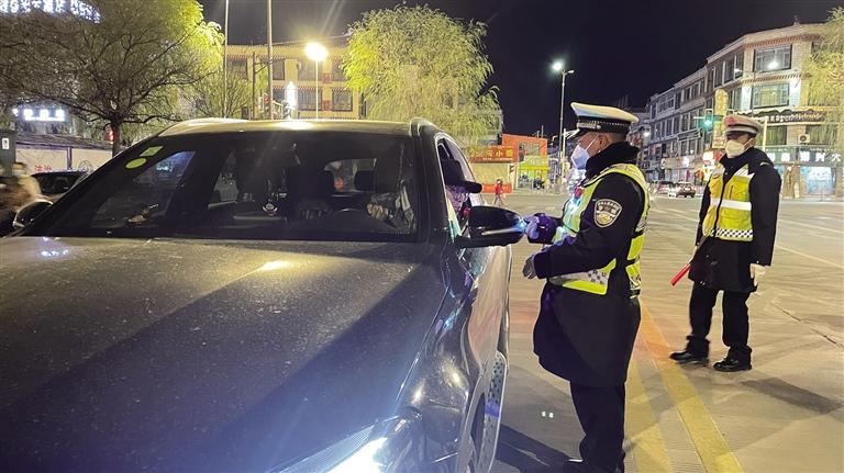拉薩冬日的夜晚寒風凜冽。夜色中,一輛輛汽車有序通行,街道又恢復了往日的熱鬧。當天晚上9時許,記者跟隨拉薩市公安局交警支隊執(zhí)法監(jiān)督大隊民警前往江蘇大道,城南大隊的民警已經(jīng)設置好路障、標牌,正在對過往車輛逐一進行詳細排查。“您好,請出示駕照?!薄澳?,請吹氣?!痹诿窬闹笓]下,車輛有序通過檢查點。市民扎西多吉駕車經(jīng)過檢查點后告訴記者,在這么冷的天氣里,交警依然堅守在路面上,確實令人敬佩,應該為他們點贊?!拔視斡洝_車不喝酒,喝酒不開車’,也會自覺遵守交通法律法規(guī),文明出行?!痹鞫嗉f。