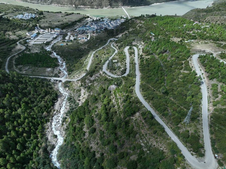 這是2022年9月30日拍攝的派墨公路派鎮(zhèn)起點(diǎn)路段(無(wú)人機(jī)照片)。新華社發(fā)(董志雄 攝)