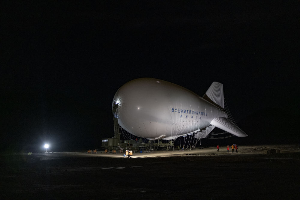 “極目一號”Ⅲ型浮空艇在發(fā)放場地準(zhǔn)備升空(2022年5月15日攝)。