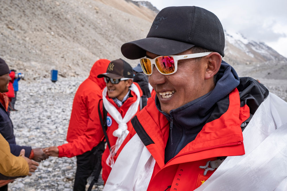 德慶歐珠和隊友安全返回珠峰大本營(2022年5月4日攝)。