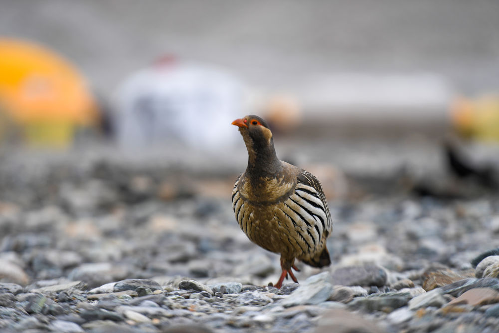 在珠峰大本營拍攝的一只藏雪雞(2022年5月8日攝)。