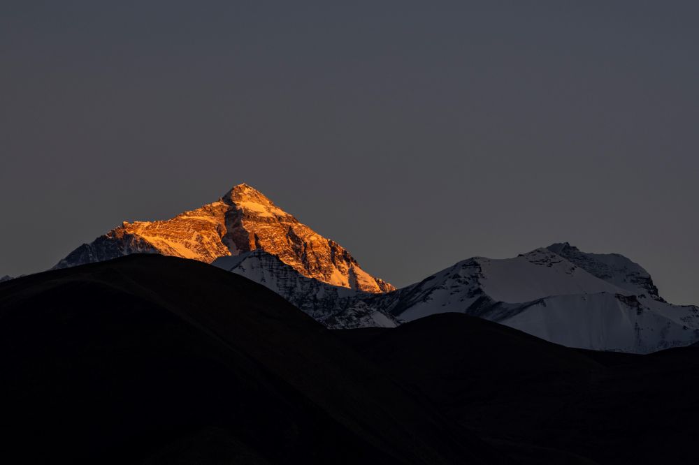 日落時分的珠峰(2022年5月10日攝)。