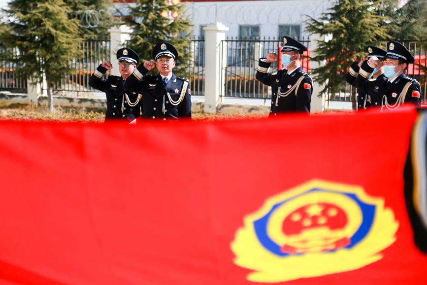 1月9日上午,拉薩鐵路公安處組織迎警旗宣誓儀式,各單位干部民警身著警禮服整齊列隊、莊嚴(yán)肅立,在雄壯激昂的警歌聲中向警旗莊重敬禮。升旗儀式結(jié)束后,全體干部民警面向警旗,舉起右臂,齊聲宣誓中國人民警察誓詞,夯實(shí)獻(xiàn)身于拉鐵公安事業(yè)的堅定決心。