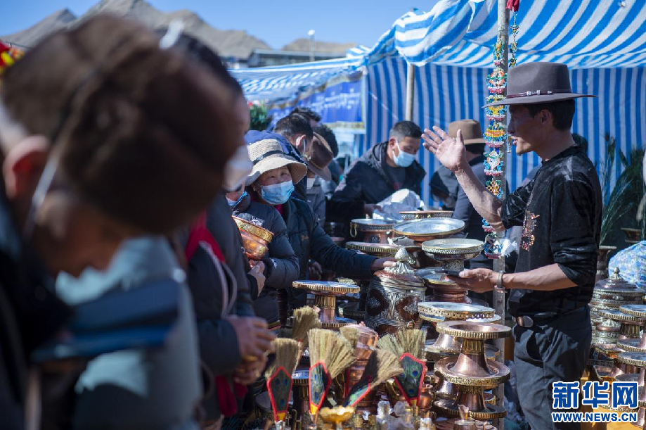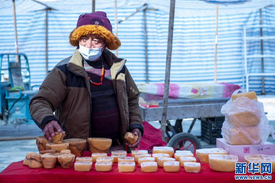 這是來自西藏當雄的商戶在介紹商品(1月20日攝)。 新華網(wǎng) 旦增努布 攝