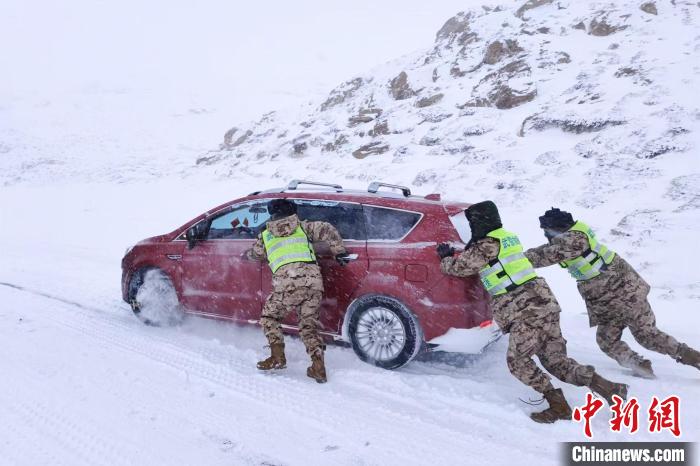 圖為武警官兵幫助過(guò)往車輛。 李庚路 攝