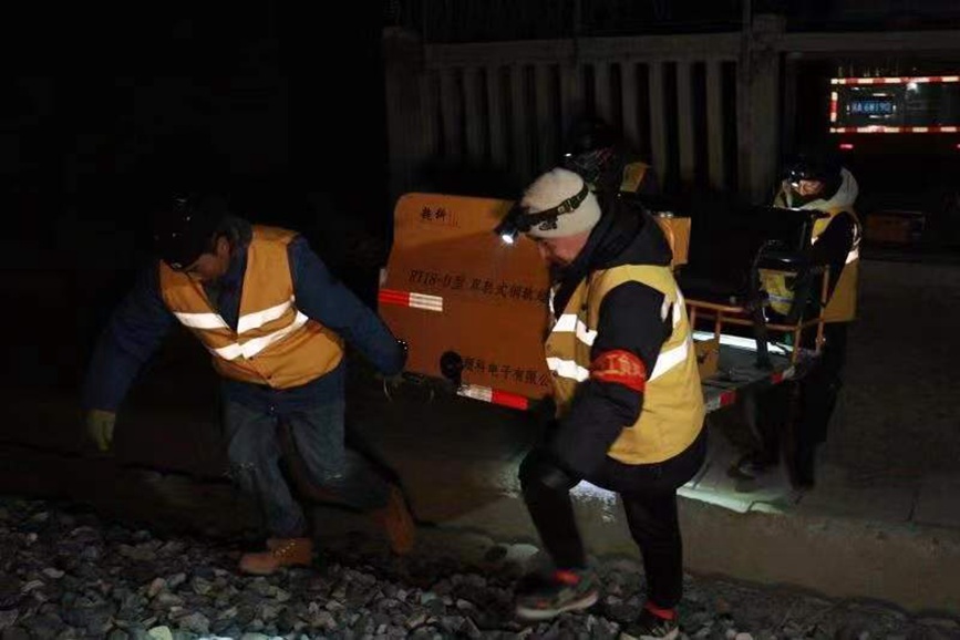 “大家?guī)Ш霉ぞ卟牧?,?zhǔn)備出發(fā)?!?2時(shí)整,隨著作業(yè)負(fù)責(zé)人探傷工區(qū)工長(zhǎng)羅布一聲令下,呼嘯的寒風(fēng)中,黃色的“迷你敞篷車(chē)”緩緩啟動(dòng),載著4名職工,開(kāi)始了當(dāng)晚對(duì)拉林鐵路20多公里線路的探傷檢查任務(wù)。