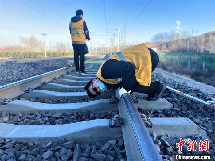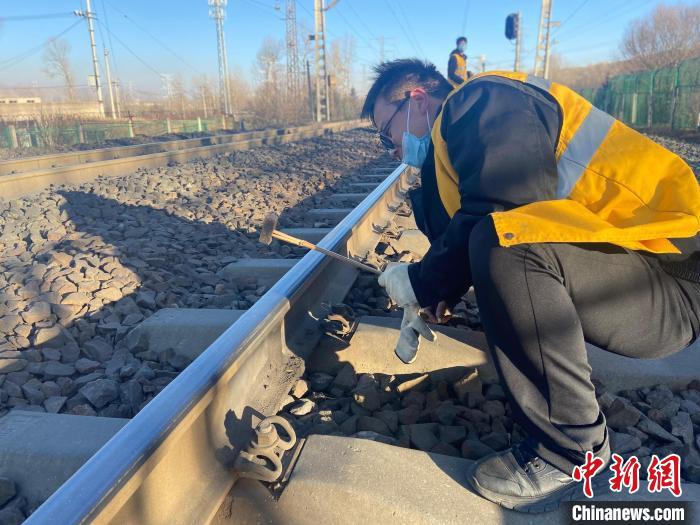 “春運(yùn)期間,正是鋼軌折斷多發(fā)期,一定要仔細(xì)檢查線路的高低狀態(tài),一旦有異常必須立刻記錄解決,決不能馬虎。”走到線路防斷重點(diǎn)區(qū)段時(shí),中國(guó)鐵路青藏集團(tuán)有限公司西寧工務(wù)段湟源線路車間檢查工區(qū)工長(zhǎng)侯鵬俯身趴在鋼軌上,仔細(xì)觀察并叮囑,锃亮的鋼軌頂面反射著刺眼的白光,在他的臉上一閃一閃。