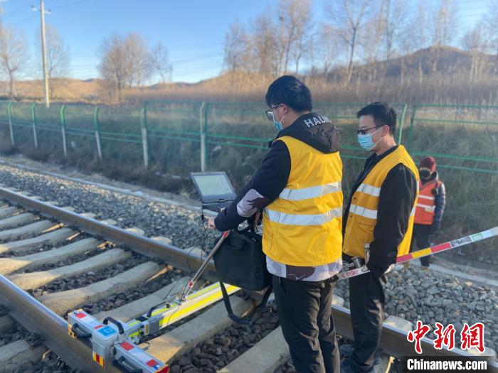 圖為“鋼軌醫(yī)生”對(duì)使用軌道檢查儀對(duì)線路進(jìn)行檢查。 黨敏嘉 攝