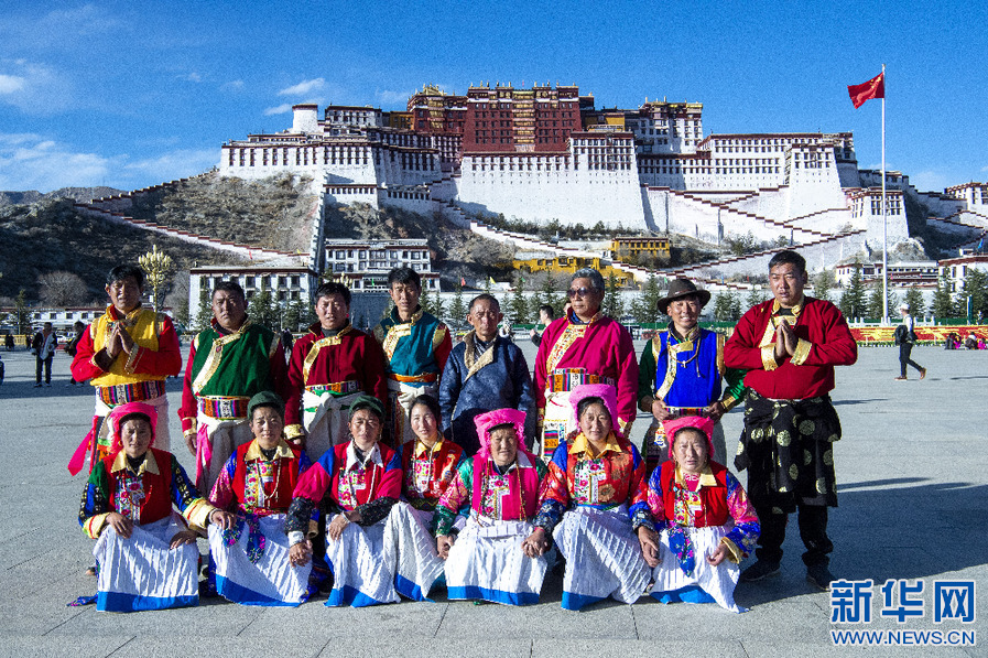 來自云南的游客在布達拉宮廣場拍照留念(1月30日攝)。新華網 旦增努布 攝