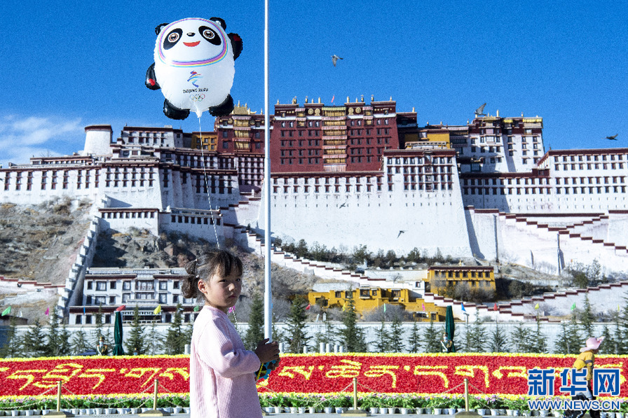 一名小女孩在布達拉宮廣場拍照留念(1月30日攝)。新華網 旦增努布 攝