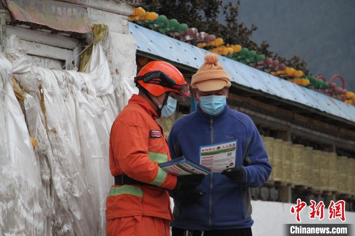 圖為森林消防員在景區(qū)重點區(qū)域普及防火知識。 林芝市森林消防供圖