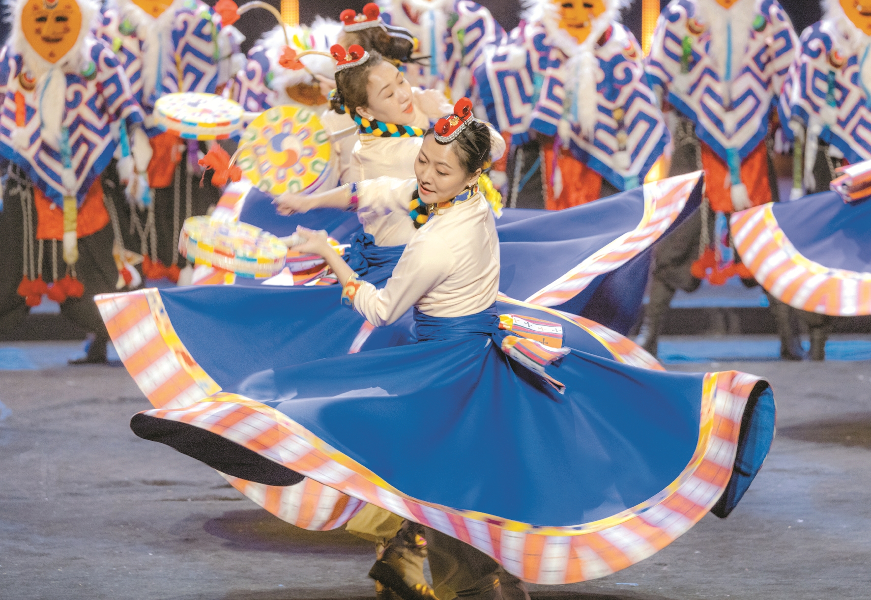 演出在開場歌舞《新年 扎西德勒》中拉開帷幕;《扎西熱巴》《豐收的喜悅》等文藝交往交流交融成果的演出,展現(xiàn)了中華優(yōu)秀傳統(tǒng)文化的博大精深和與時(shí)俱進(jìn);“甜野男孩”丁真帶來的《天空下的溫暖》治愈人心,烏蘭圖雅傾情呈現(xiàn)《拉薩我的家》,次仁桑珠的《歡樂幸福年》喜慶吉祥,雜技《劈風(fēng)斬浪》剛?cè)岵?jì),驚艷眾人;《弘》《羌塘魂》《熱堆諧欽》《熱巴多吉》等節(jié)目接連登場,讓觀眾享受到極富西藏特色歌舞的同時(shí),也感受到西藏人民的深情厚誼?,F(xiàn)場更有在江蘇就業(yè)的拉薩籍高校畢業(yè)生和南通西藏民族中學(xué)的孩子們現(xiàn)身,在千里之外聽到鄉(xiāng)音。17個(gè)節(jié)目全面展現(xiàn)了新時(shí)代拉薩新氣象、新面貌,舞美變幻、光效爛漫。現(xiàn)場掌聲不斷,氣氛熱烈祥和。
