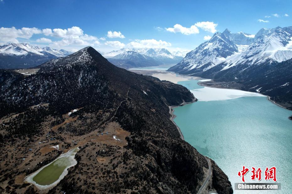 然烏湖位于西藏昌都市八宿縣,是山體滑坡或泥石流堵塞河道而形成的堰塞湖。時(shí)下,然烏湖半冰半水的湖面與雪山、藍(lán)天相互映襯,如畫(huà)一般,美不勝收。圖為2月16日,西藏昌都然烏湖。(無(wú)人機(jī)照片)