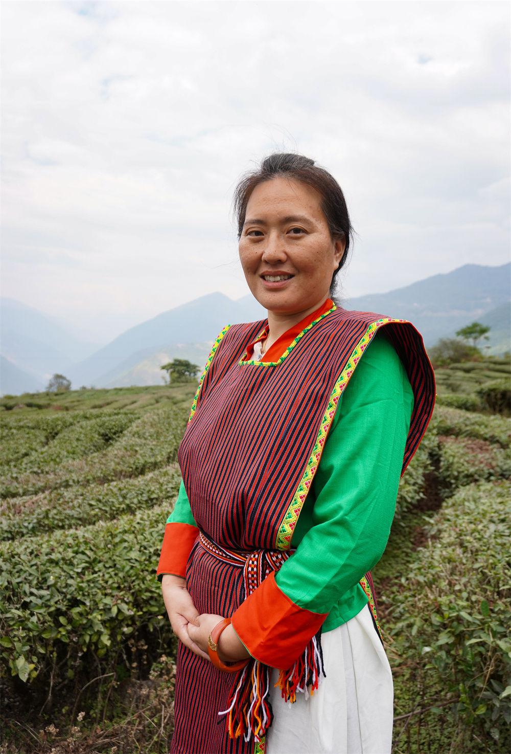 白瑪曲珍在西藏墨脫縣一茶園調(diào)研當?shù)禺a(chǎn)業(yè)情況(2月20日攝)。新華社記者 王澤昊 攝