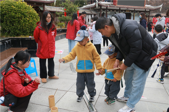 藏歷新年游園活動由趣味游戲、燈謎競猜、我與2023同框、新年微心愿、樂頌祖國等部分組成。趣味游戲環(huán)節(jié),設置了8個游戲點,每個點位的參與人員自覺排起長隊,游戲項目均老少皆宜,不同民族的市民扶老攜幼“全家總動員”,團結合作,樂在其中,拉近了親朋之間的距離。燈謎競猜環(huán)節(jié),結合黨史、新中國史和百姓生活,懸掛800個謎面,現場市民們興致昂揚,發(fā)揮自己的聰明才智揭下謎底,兌換獎品。“我與2023同框”合影活動中,大家臉上洋溢著幸福的笑容,站在新時代、謀求新作為?!靶履晡⑿脑浮痹S愿活動現場始終洋溢著幸福、快樂、愉悅的氣息,大家紛紛書寫下自己的愿望,表達自己的理想追求和奮斗目標。