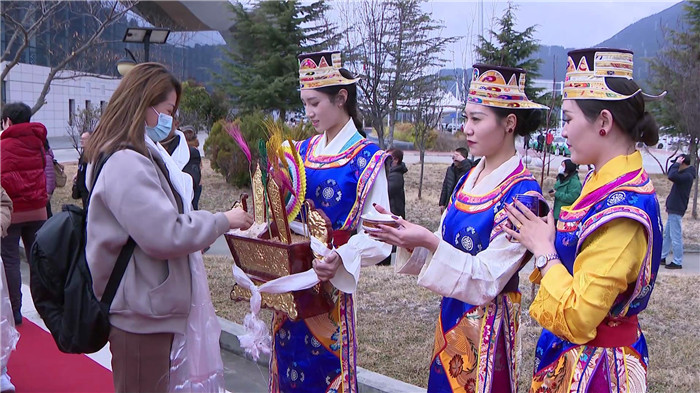 隨后,身著盛裝的藏族姑娘和小伙們?yōu)檫h(yuǎn)道而來的廣東游客們獻(xiàn)上優(yōu)美的歌舞表演。