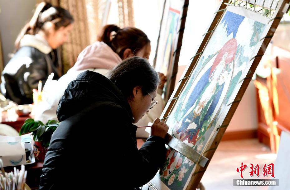 隨著經(jīng)濟社會的發(fā)展,在對非物質(zhì)文化遺產(chǎn)傳承越來越重視的背景下,也有了越來越多的西藏女性學習唐卡繪畫。她們在實現(xiàn)自己夢想的同時,也為民族文化的傳承與發(fā)展貢獻著“巾幗力量”。圖為3月8日,西藏唐卡畫院內(nèi)正在繪制唐卡的女學生。