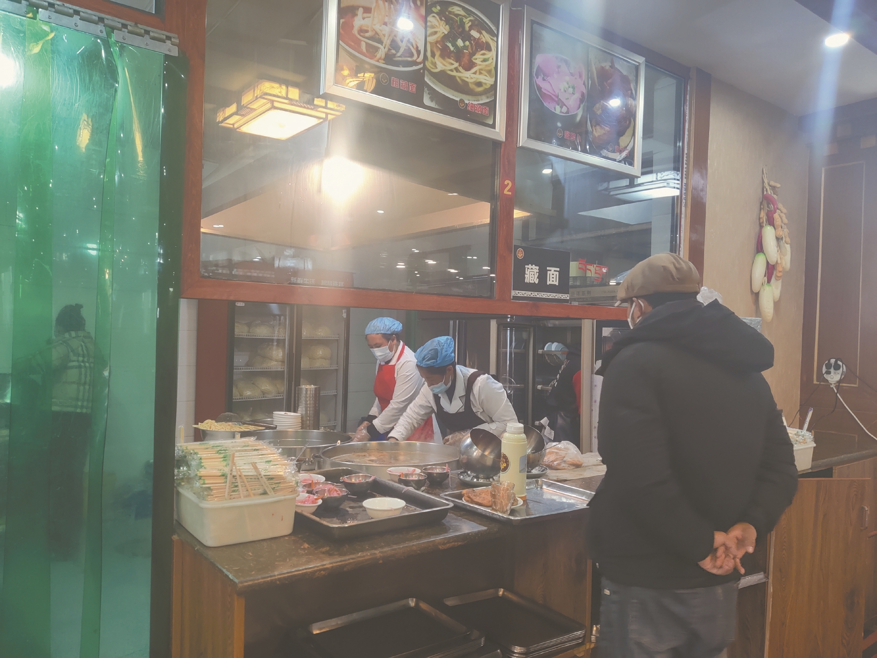 一大早,位于城關(guān)區(qū)仙足島的嚓榮魯突陸藏餐館續(xù)迎來(lái)顧客。檔口內(nèi),工作人員在各自崗位上忙碌著。抓一把面,放上牛肉丁,撒上香蔥,再澆上一勺牛肉湯,一碗熱氣氤氳、香味四溢的藏面新鮮出鍋,再配上甜茶和肉餅,美好的一天就在此刻開(kāi)啟。作為一家連鎖店,嚓榮魯突藏餐館在拉薩市區(qū)及各縣(區(qū))、地市共有17家分店,在食材、衛(wèi)生等方面,均采取嚴(yán)格統(tǒng)一的管理標(biāo)準(zhǔn)。