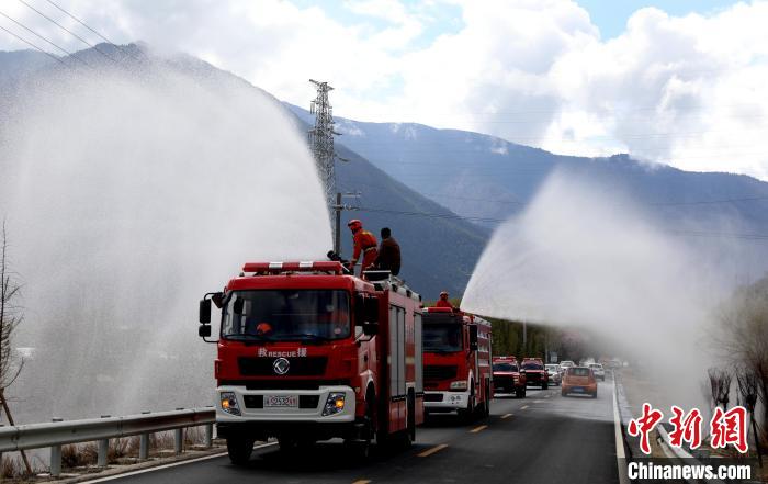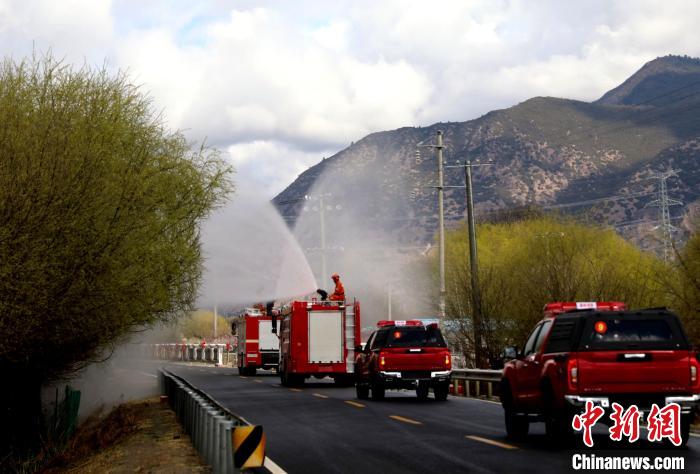 林芝市森林消防支隊消防員正在進行灑水增濕作業(yè)。西繞拉翁 攝