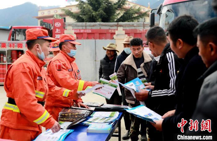 林芝市森林消防支隊指戰(zhàn)員在進行防火宣傳知識講解。西繞拉翁 攝