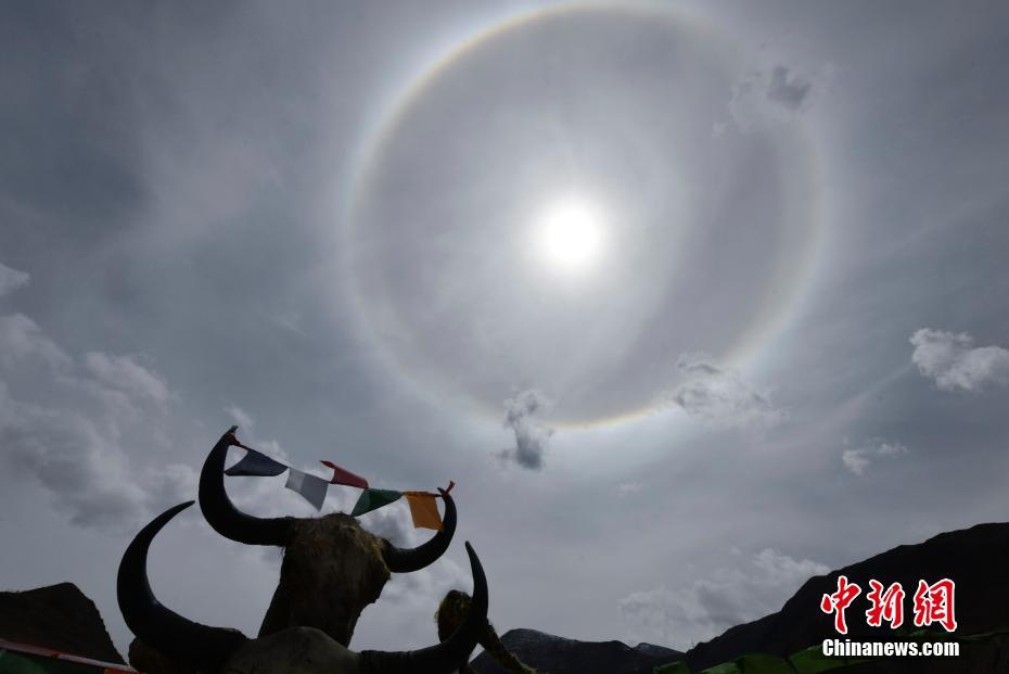3月20日,西藏拉薩上空出現(xiàn)日暈景觀。 李林 攝