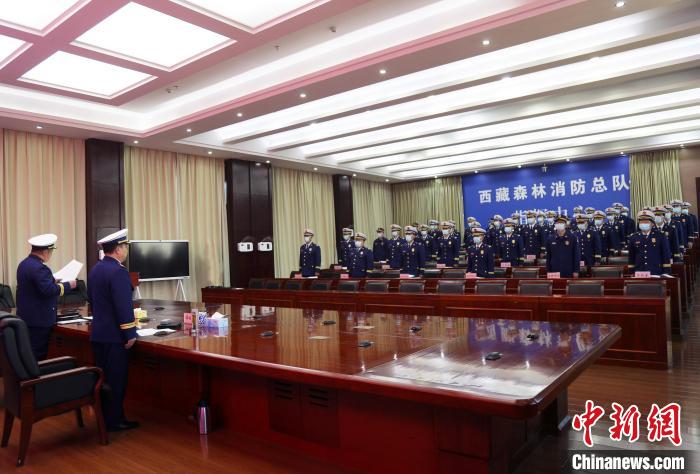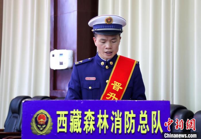 3月22日,西藏森林消防總隊(duì)政委譚程富發(fā)言。 西藏森林消防總隊(duì)供圖