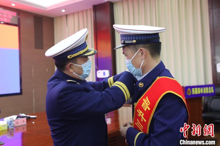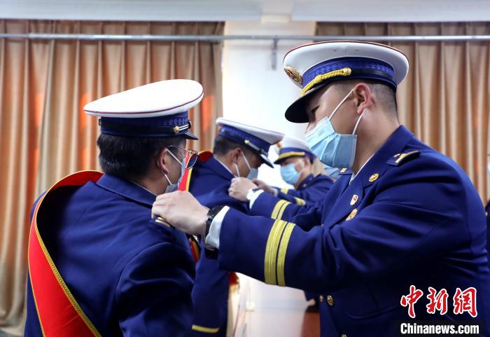 3月22日,分會(huì)場(chǎng)更換消防救援銜標(biāo)識(shí)?!∥鞑厣窒揽傟?duì)供圖
