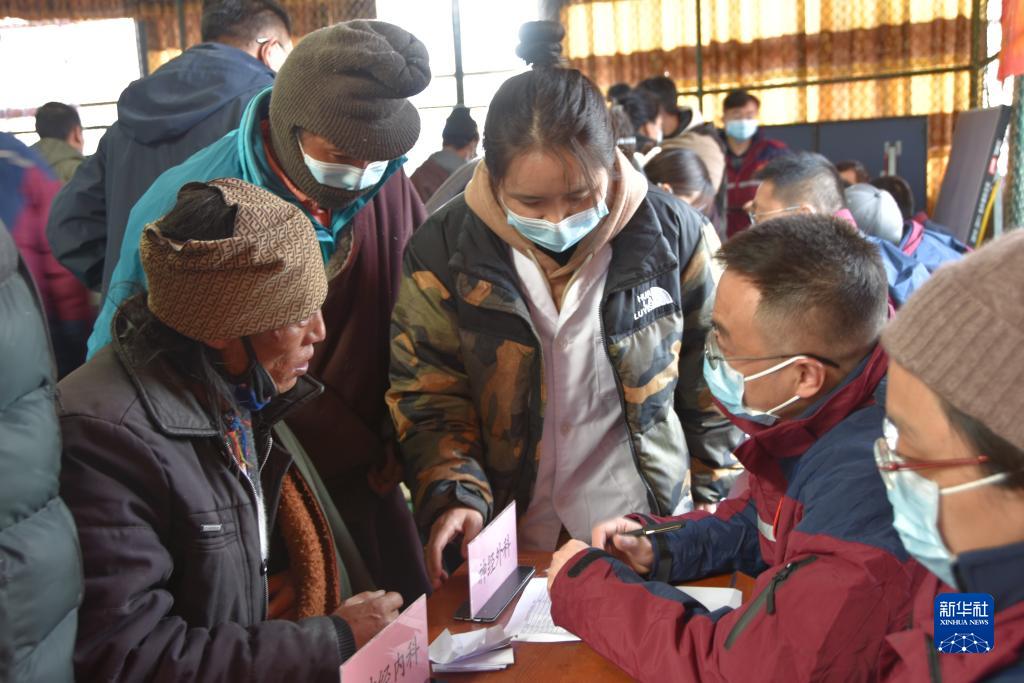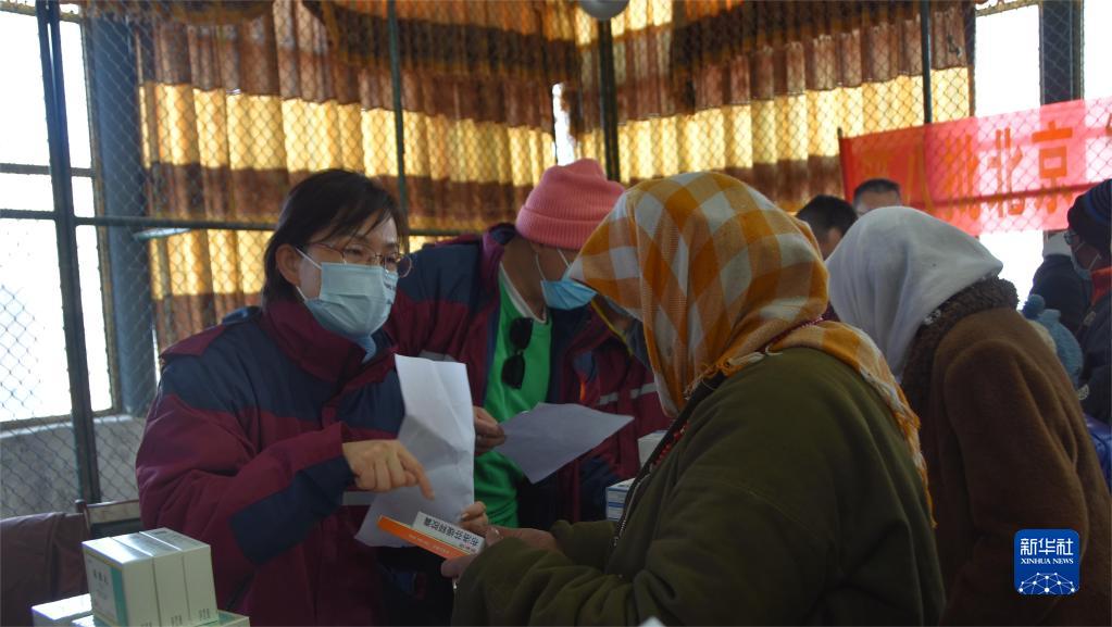 午后時分,天空仍然飄著小雪,來自北京援藏醫(yī)療隊的15名醫(yī)生剛下車,便馬不停蹄地開始工作。據(jù)援藏醫(yī)療隊醫(yī)務處處長趙萬全介紹,本次義診前,醫(yī)療隊已提前了解當?shù)厝罕姷亩喟l(fā)病類型,攜帶了充足的降血壓、常用抗生素等藥品。與此同時,他們還為納木湖鄉(xiāng)群眾開展“分級診療”,“把脈”群眾的健康狀況,對群眾所患病癥的進一步醫(yī)治給出相應建議。