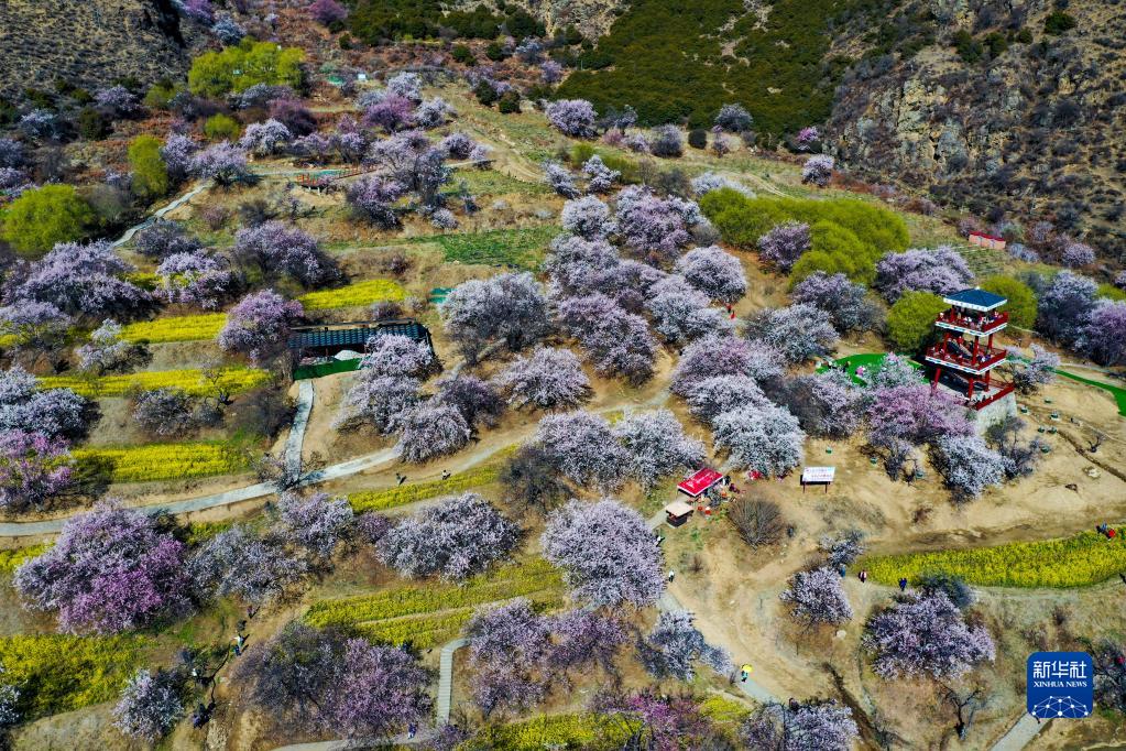 目前,西藏林芝市嘎拉村漫山遍野的桃花綻放,美麗春景引人入勝。