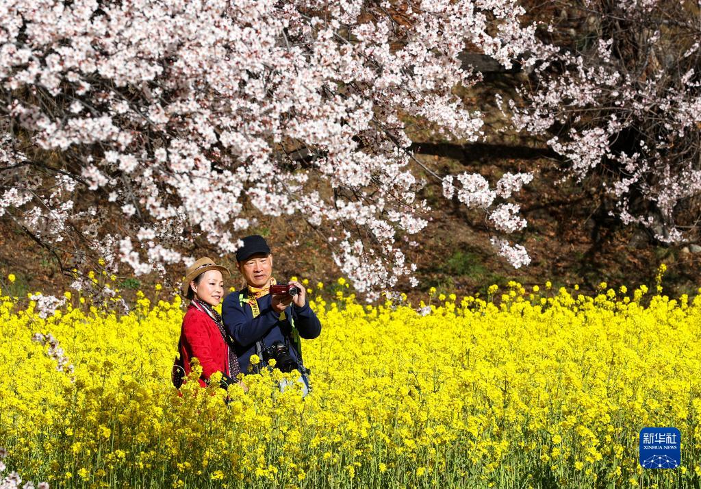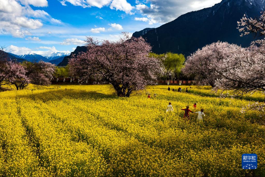 游客在嘎拉村桃花園中游玩(3月24日攝)。新華社記者 姜帆 攝
