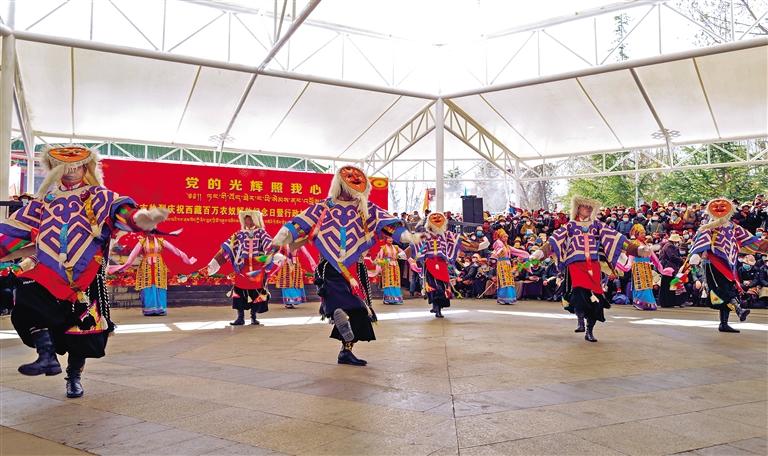 連日來,拉薩市城關(guān)區(qū)、堆龍德慶區(qū),山南市瓊結(jié)縣、那曲市班戈縣分別舉行紀念西藏百萬農(nóng)奴解放64周年文藝表演。優(yōu)美的歌聲、熱情的舞步,不時贏得在場觀眾的陣陣喝彩??赐暄莩?,群眾益西旦增激動地說:“64年來,西藏發(fā)生了翻天覆地的變化,我們的生活越來越好,大家從內(nèi)心深處感謝黨和國家?!?/p>