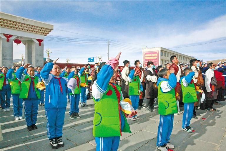 28日,西藏大學(xué)、拉薩市教育局組織學(xué)生開展“升國旗、唱國歌”活動,并觀看《復(fù)興之路》和《人格的力量——中國共產(chǎn)黨人的家國情懷》兩個直播課堂,革命先烈為實現(xiàn)國家解放和民族復(fù)興前仆后繼、視死如歸的英雄事跡深深打動了每一名學(xué)生。西藏大學(xué)學(xué)生向秋雨說:“我們要以史為鑒,開創(chuàng)未來,扎實學(xué)好專業(yè)知識,維護祖國統(tǒng)一,鑄牢中華民族共同體意識,讓青春之花在祖國最需要的地方絢麗綻放?!?/p>