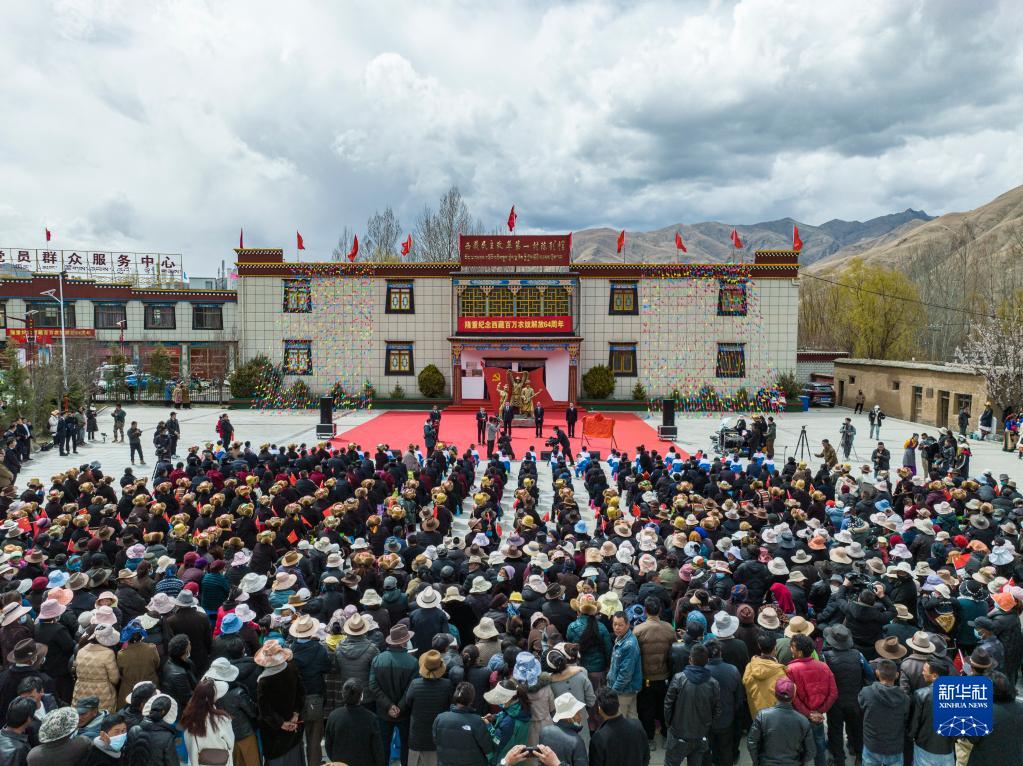 這是3月28日拍攝的西藏民主改革第一村陳列館重新開放儀式現(xiàn)場。新華社記者 孫非 攝
