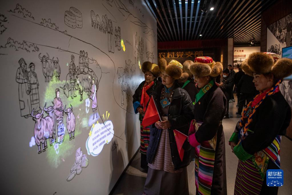 3月28日,觀眾在重新開放的西藏民主改革第一村陳列館參觀。新華社記者 孫非 攝