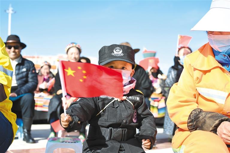 3月28日上午,日喀則市隆重舉行“升國旗、唱國歌”儀式,來自各行各業(yè)千余人齊聚日喀則市4號公園,伴隨著《義勇軍進行曲》響起,在場的各族干部群眾齊聲歌唱:“起來,不愿做奴隸的人們,把我們的血肉筑成我們新的長城……”在雄壯的國歌聲中,鮮艷的五星紅旗冉冉升起,在藍天白云下高高飄揚。