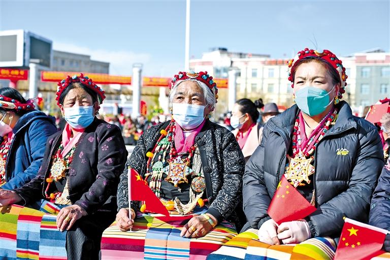 升旗儀式結(jié)束后,在場各族干部群眾觀看了日喀則市紀(jì)念西藏百萬農(nóng)奴解放64周年專題文藝演出。大家紛紛表示,經(jīng)歷過寒冬的人,最知道太陽的溫暖;親歷過黑暗的人,最知曉光明的珍貴。我們要更加緊密地團結(jié)在以習(xí)近平同志為核心的黨中央周圍,堅持以習(xí)近平新時代中國特色社會主義思想為指導(dǎo),忠誠捍衛(wèi)“兩個確立”、堅決做到“兩個維護”,牢記囑托、感恩奮進,大力踐行“四敢”要求,努力在推進“四個創(chuàng)建”、做到“四個走在前列”中爭創(chuàng)一流、奮勇爭先,為全面建設(shè)社會主義現(xiàn)代化新日喀則不懈奮斗!