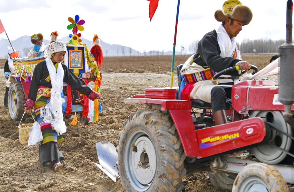 西藏拉薩市林周縣強嘎村的春耕儀式(3月16日攝)。新華社記者張汝鋒 攝