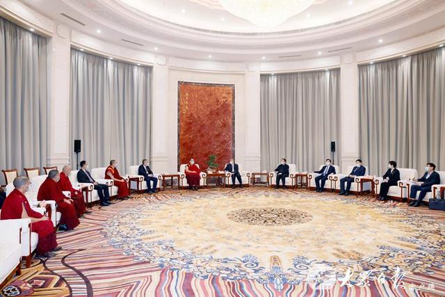 班禪說,非常高興再次來到山東,通過考察親身感受到了山東經(jīng)濟社會發(fā)展取得的巨大成就,體會到了中國共產(chǎn)黨領(lǐng)導(dǎo)和中國特色社會主義制度的顯著優(yōu)勢。班禪表示,將牢記習(xí)近平總書記的諄諄教導(dǎo),堅定擁護中國共產(chǎn)黨的領(lǐng)導(dǎo),大力弘揚藏傳佛教愛國愛教光榮傳統(tǒng),為維護祖國統(tǒng)一、民族團結(jié)、宗教和順作出自己的貢獻。衷心祝愿山東各項事業(yè)蓬勃發(fā)展,祝福各族人民幸福安康。