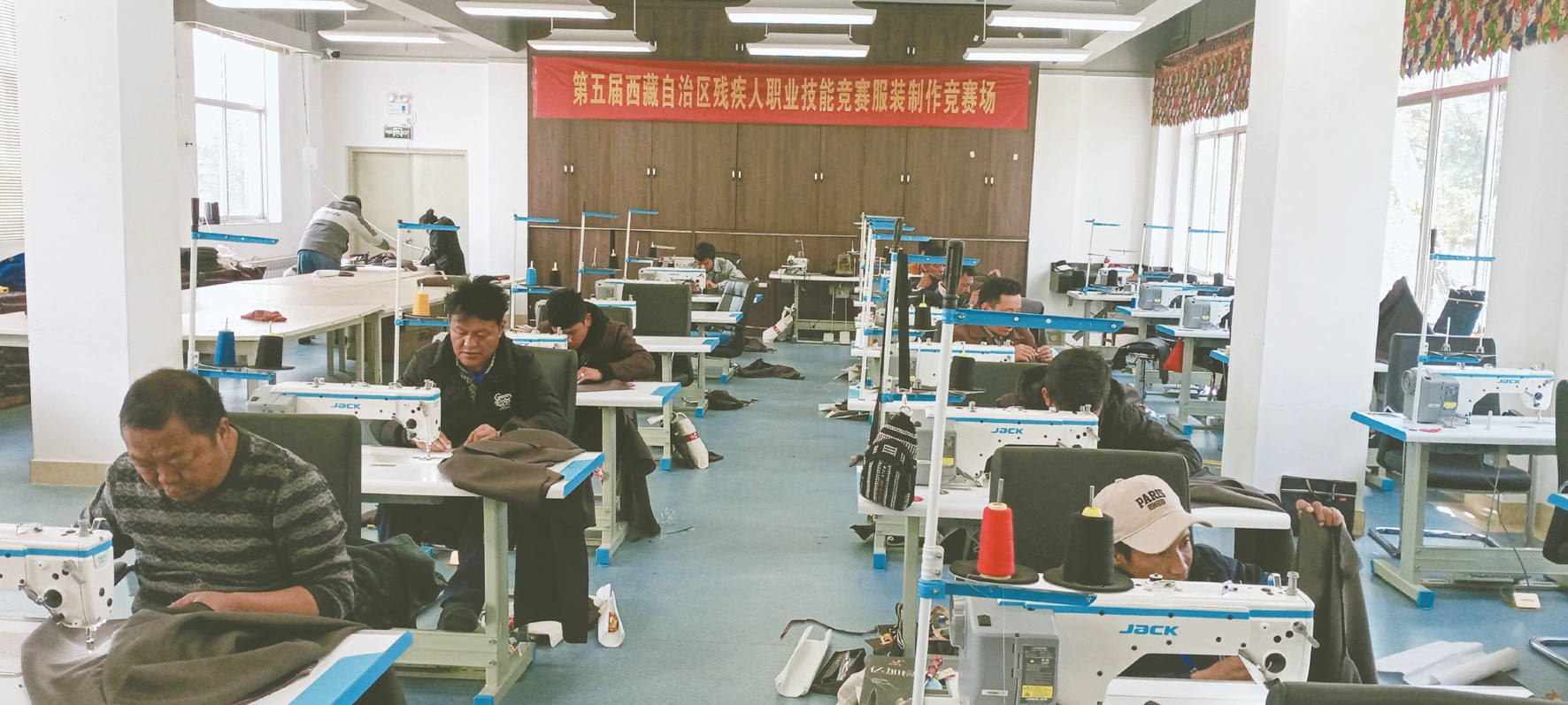 圖為拉薩代表隊選手參加西藏第五屆殘疾人職業(yè)技能競賽服裝制作比賽現(xiàn)場。拉薩融媒記者 齊永昌攝