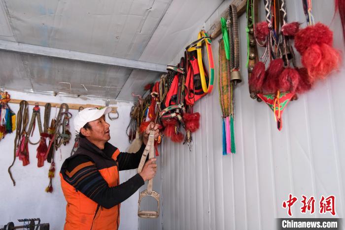 4月26日,強(qiáng)巴整理自己的馬具,他專門(mén)有一間房用于堆放馬具。中新社記者 江飛波 攝