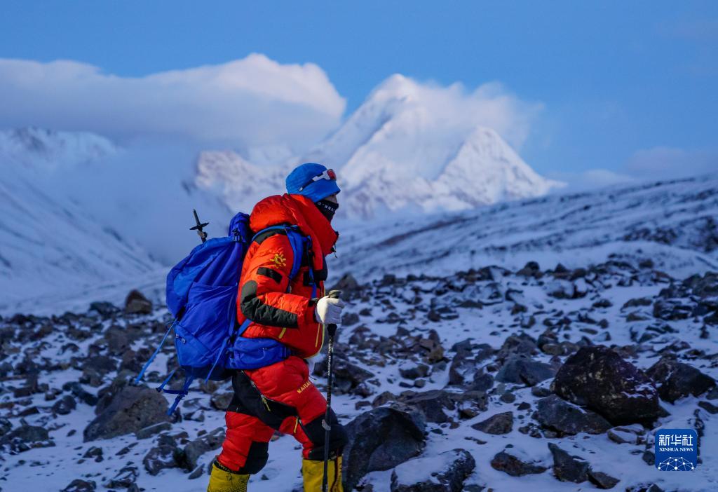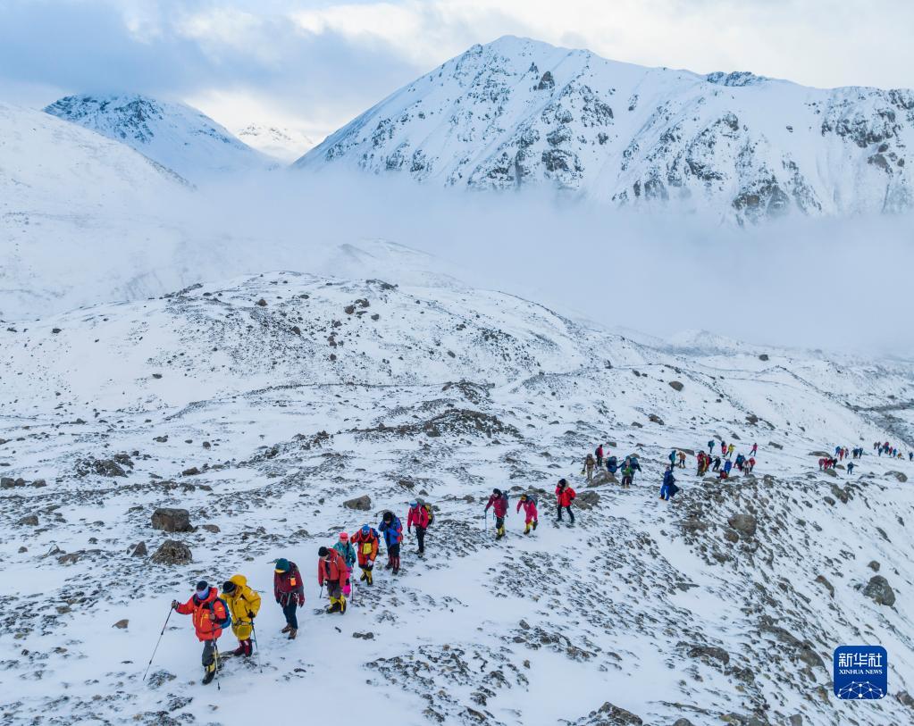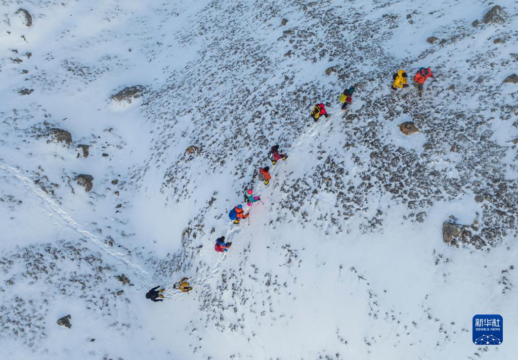 5月3日,登山愛好者正在向海拔6010米的洛堆峰峰頂進發(fā)。新華社記者 黃耀漫 攝