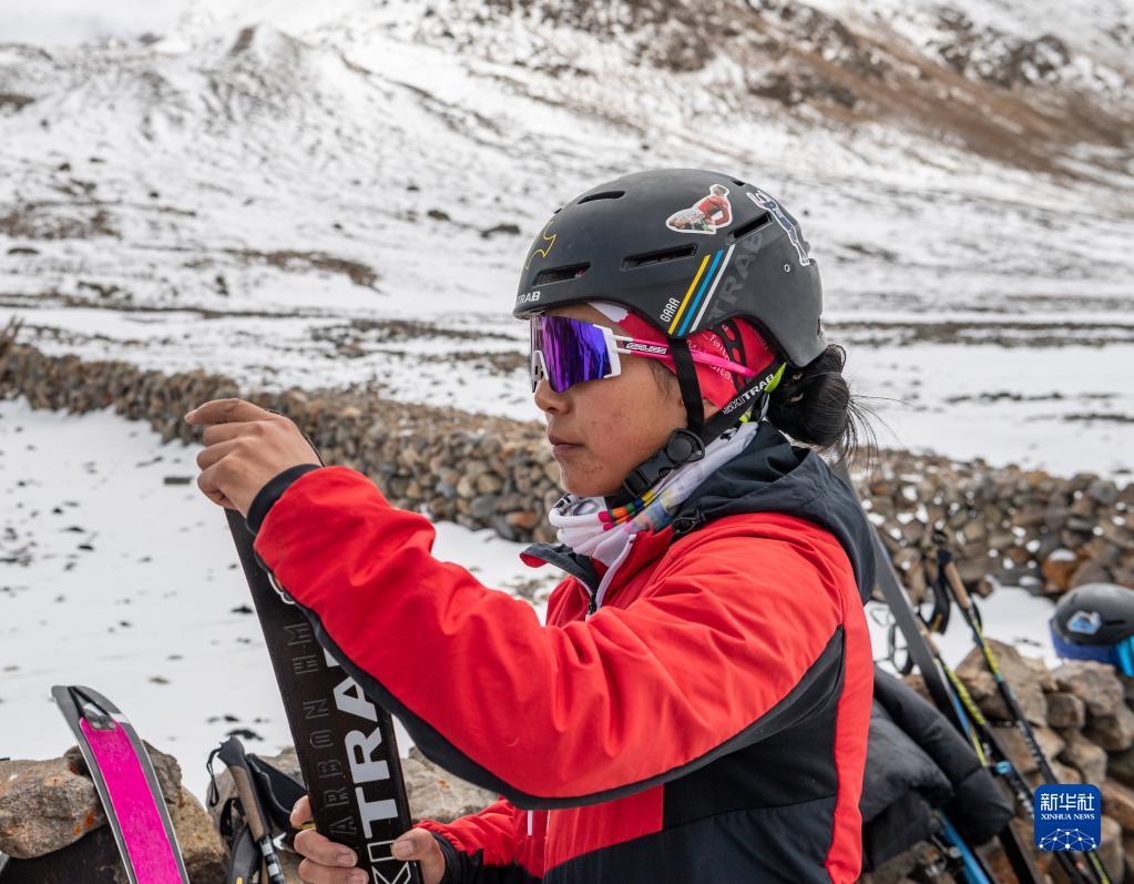 在西藏拉薩市當(dāng)雄縣羊八井鎮(zhèn),玉珍拉姆穿戴訓(xùn)練裝備(5月2日攝)。新華社記者 孫非 攝