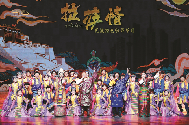 西藏,素有“歌舞的海洋”的美譽,來自民間的歌舞品類眾多、風格各異。演出中,10多個極具藏族文化特色的歌舞類節(jié)目精彩亮相,既有歷史悠久、蜚聲中外的藏戲、傳統(tǒng)舞蹈等非遺經(jīng)典,也有反映近年來拉薩城市新面貌、人民生活新變化的歌舞節(jié)目,全面展示了拉薩不同時期、不同內(nèi)容、不同形式的風土人情和人文魅力。