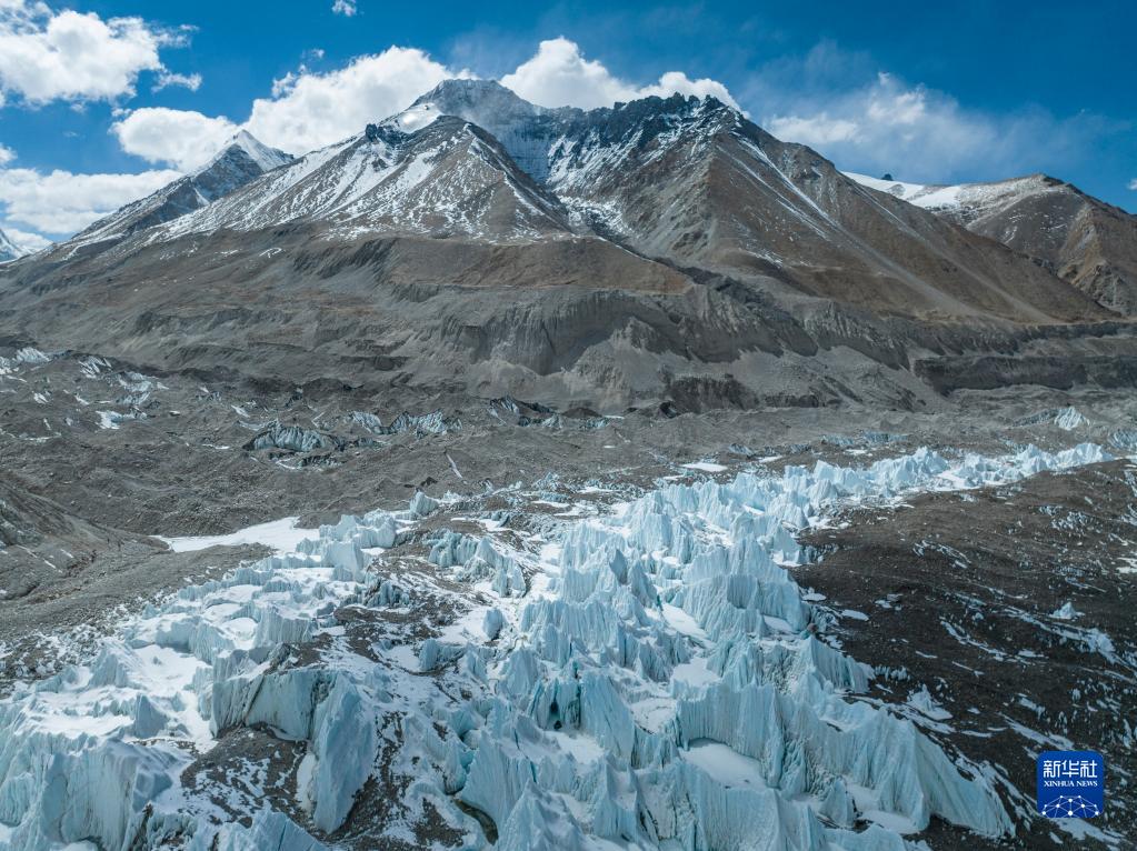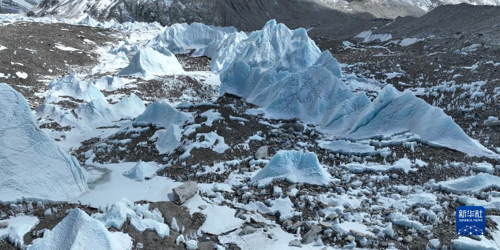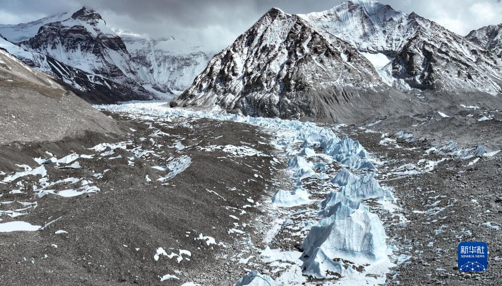 這是珠峰腳下的中絨布冰川(5月15日攝,無(wú)人機(jī)照片)。新華社記者 孫非 攝